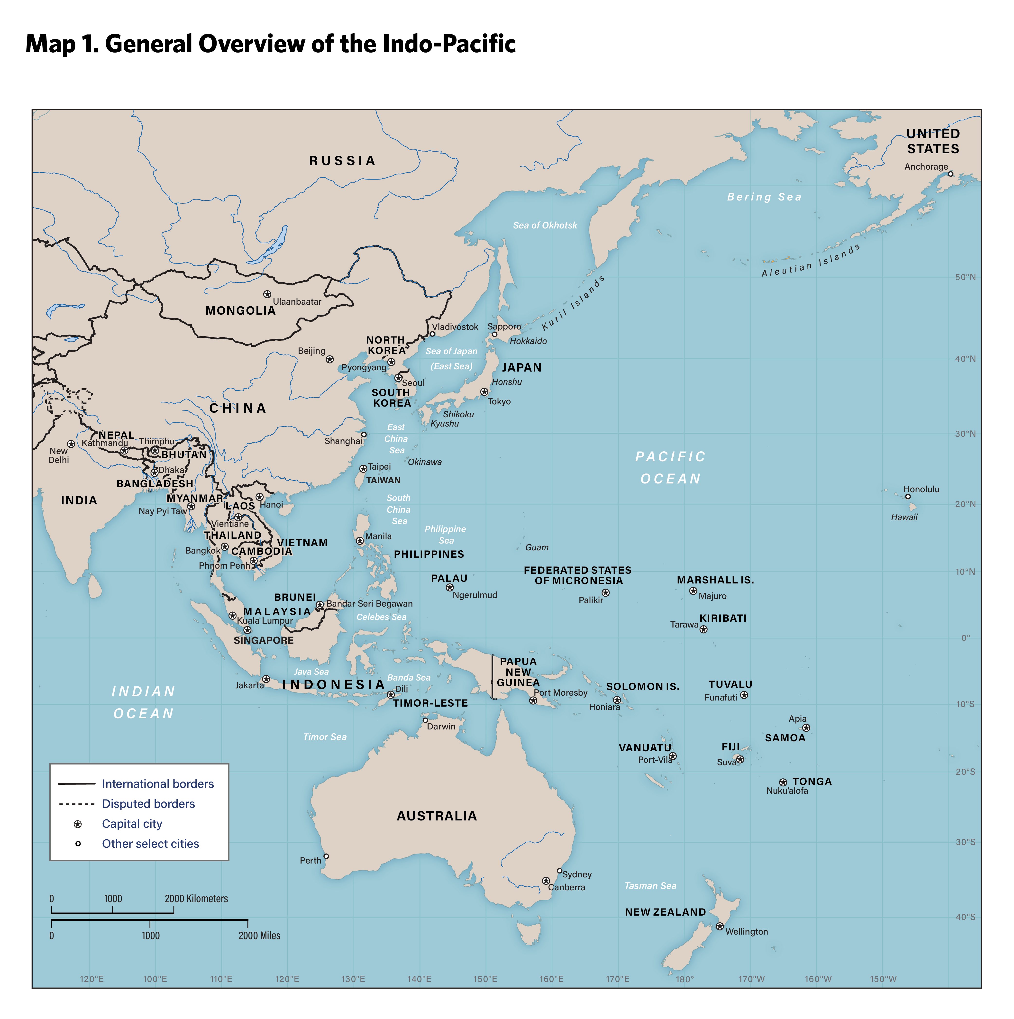 General insecurity in the Indo-Pacific has risen in recent years, but the two most likely flash points that could result in a major conflict are the Taiwan Strait and the Korean Peninsula (see map 1). As a result, this report focuses largely on the primary powers implicated in these potential flash points, including China, North Korea, and the United States. Australia, Japan, and South Korea, the preeminent regional U.S. allies, are also significant players. While South Korea has developed a robust arsenal of missiles over decades, both Australia and Japan are quickly adapting to what each perceives as a less secure region.