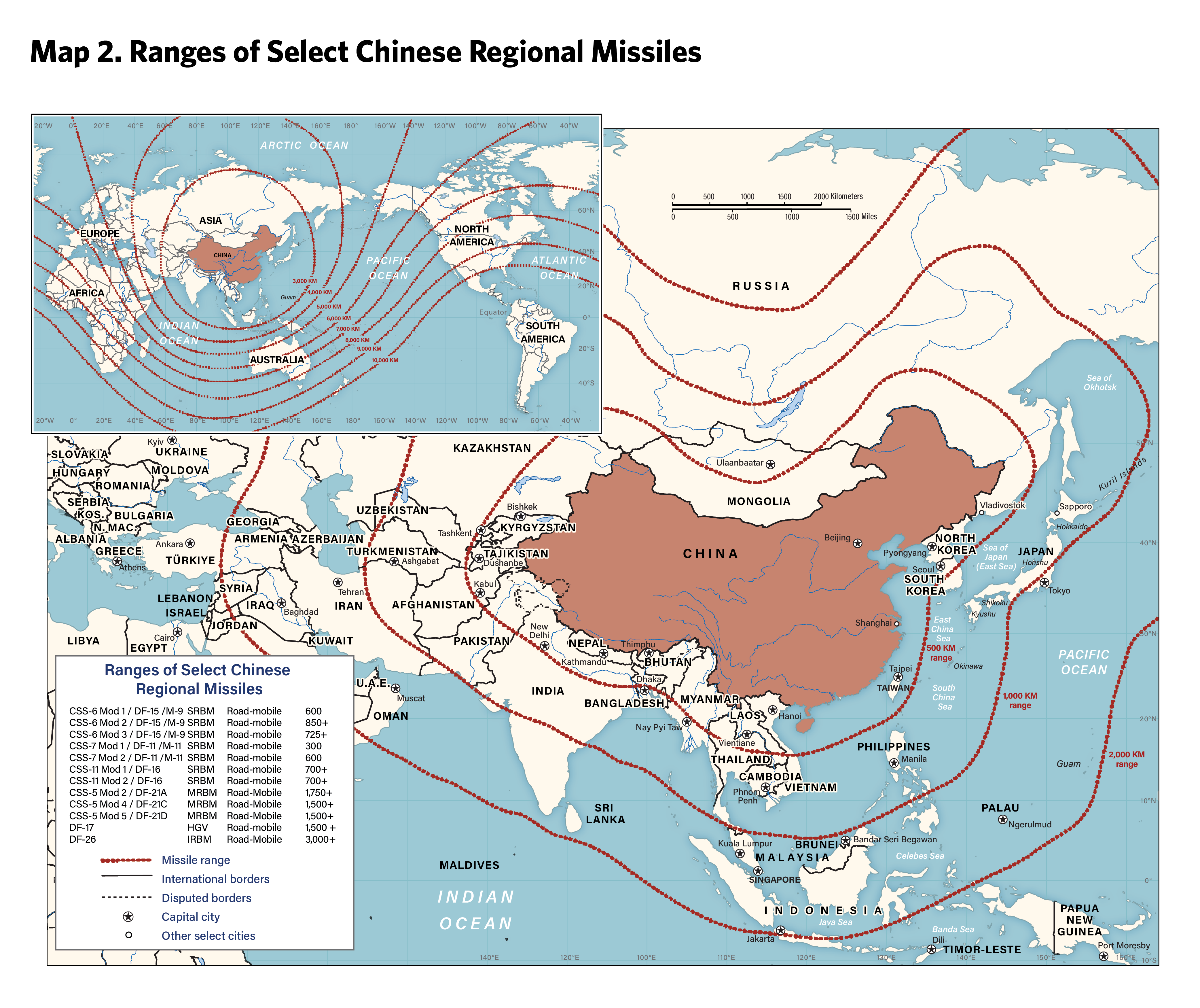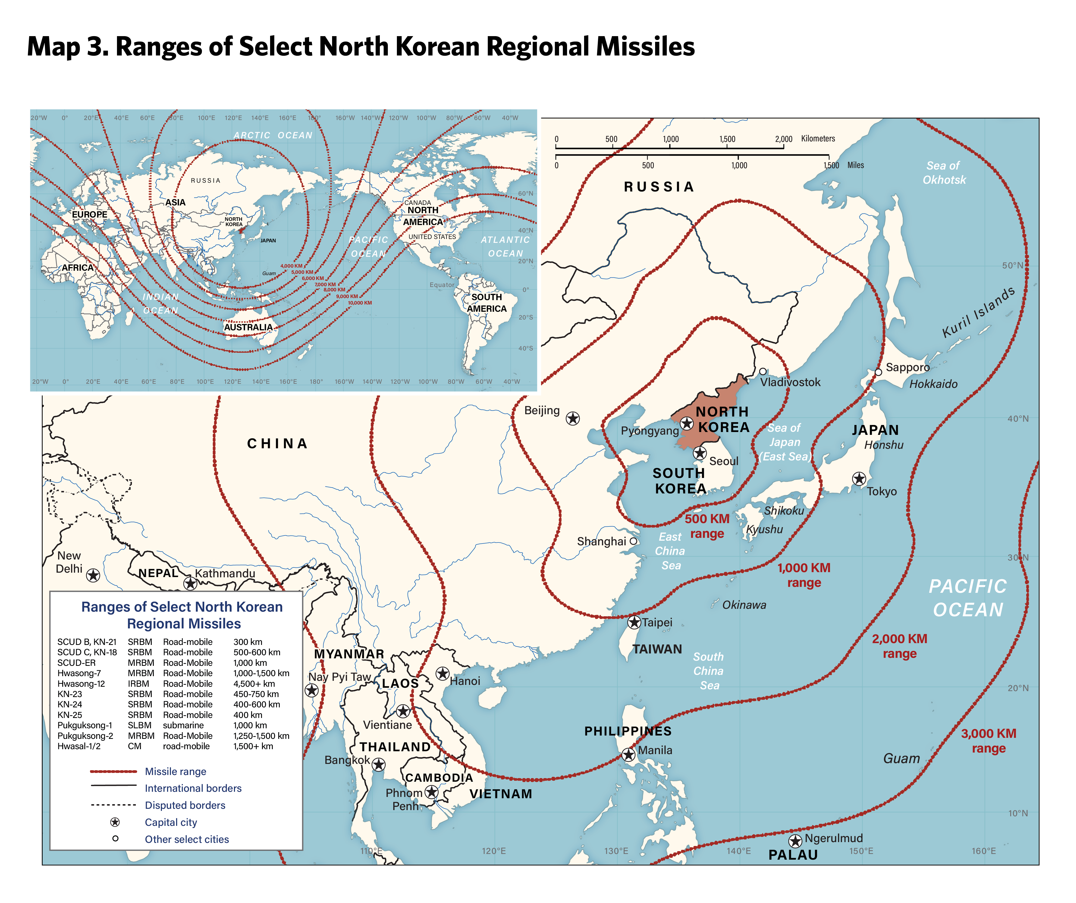 1 In general, short-range missiles are those with ranges between 300 kilometers and 1,000 kilometers, medium-range missiles are those with ranges between 1,000 kilometers and 3,000 kilometers, and intermediate-range missiles are those with ranges between 3,000 and 5,500 kilometers.